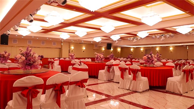 鉑金大廳—色彩濃烈,現(xiàn)代式裝修,面積560㎡,層高6米,開(kāi)合大屏配合舞美燈光,唯美震撼、極盡奢華,可承接30桌的中型宴會(huì);12米長(zhǎng)的可移動(dòng)T臺(tái)收起后,就變成了可容納400人同時(shí)落座的大型多功能會(huì)議室。